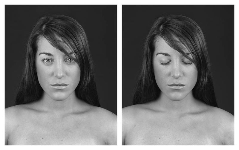 The series "The Introspective Gaze" focuses on diptych portraits that show the same person with their eyes open and closed, exploring the dynamics of gaze between the subject and the viewer. These images serve as symbols that communicate different meanings: open eyes invite a visual connection, conveying emotions such as trust and vulnerability, while closed eyes interrupt this connection, suggesting introspection and a temporary withdrawal from the outside world.
